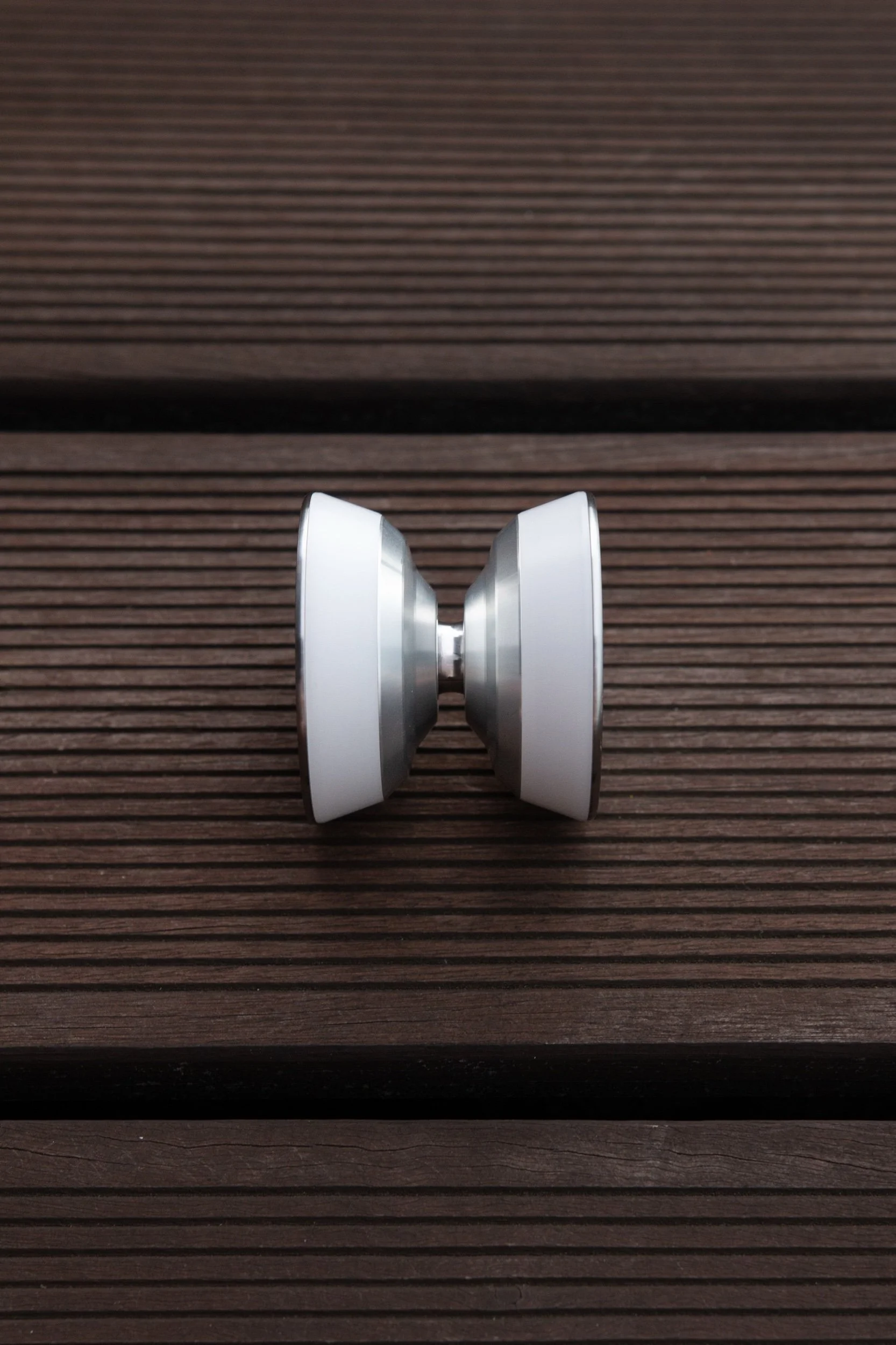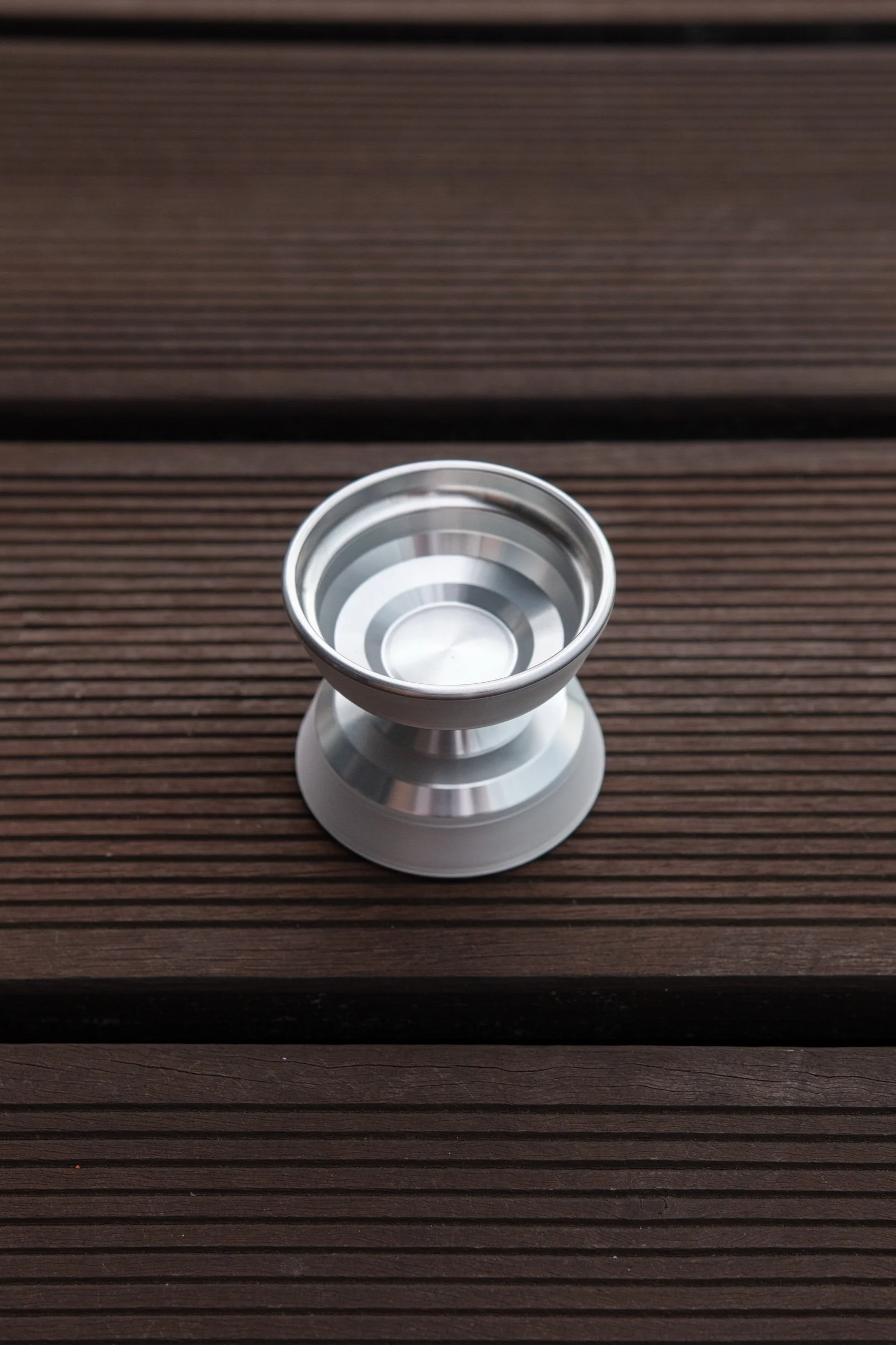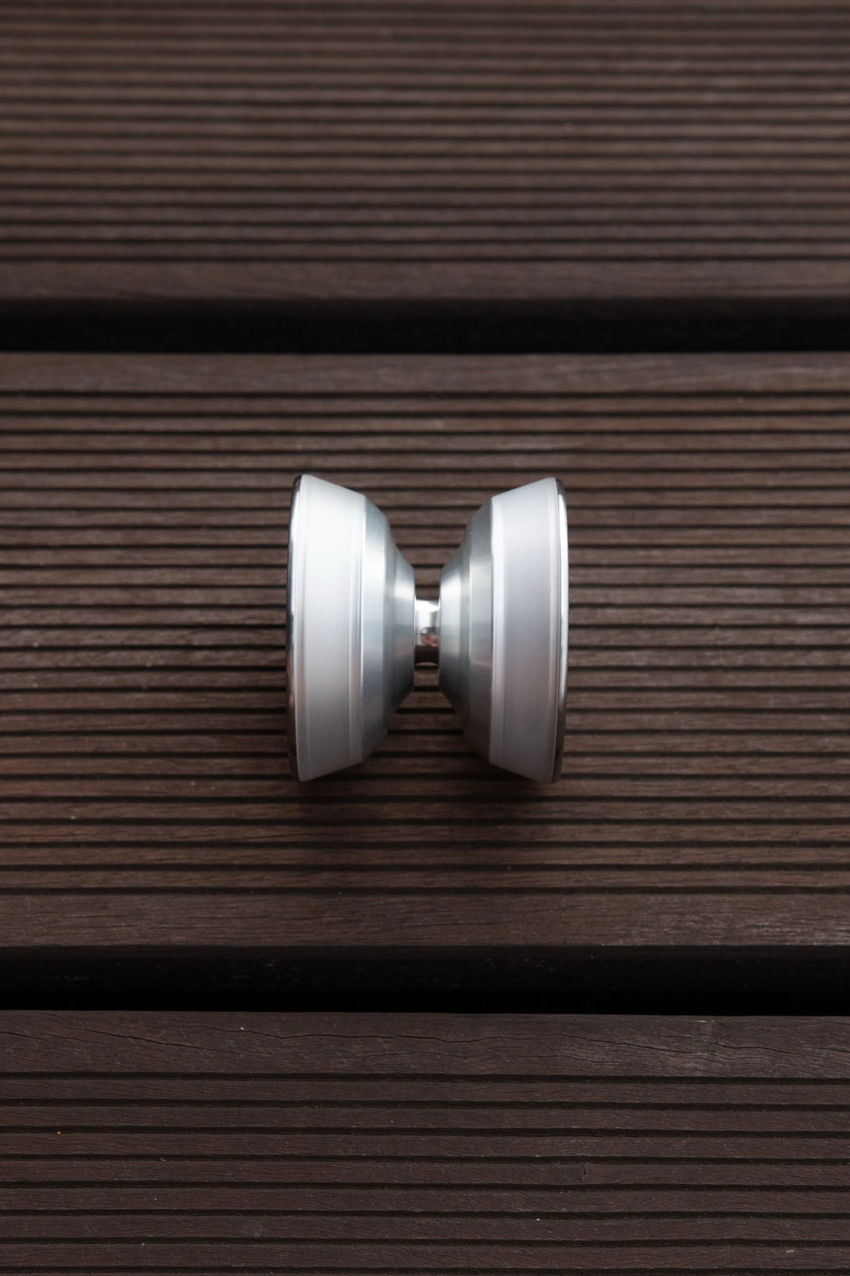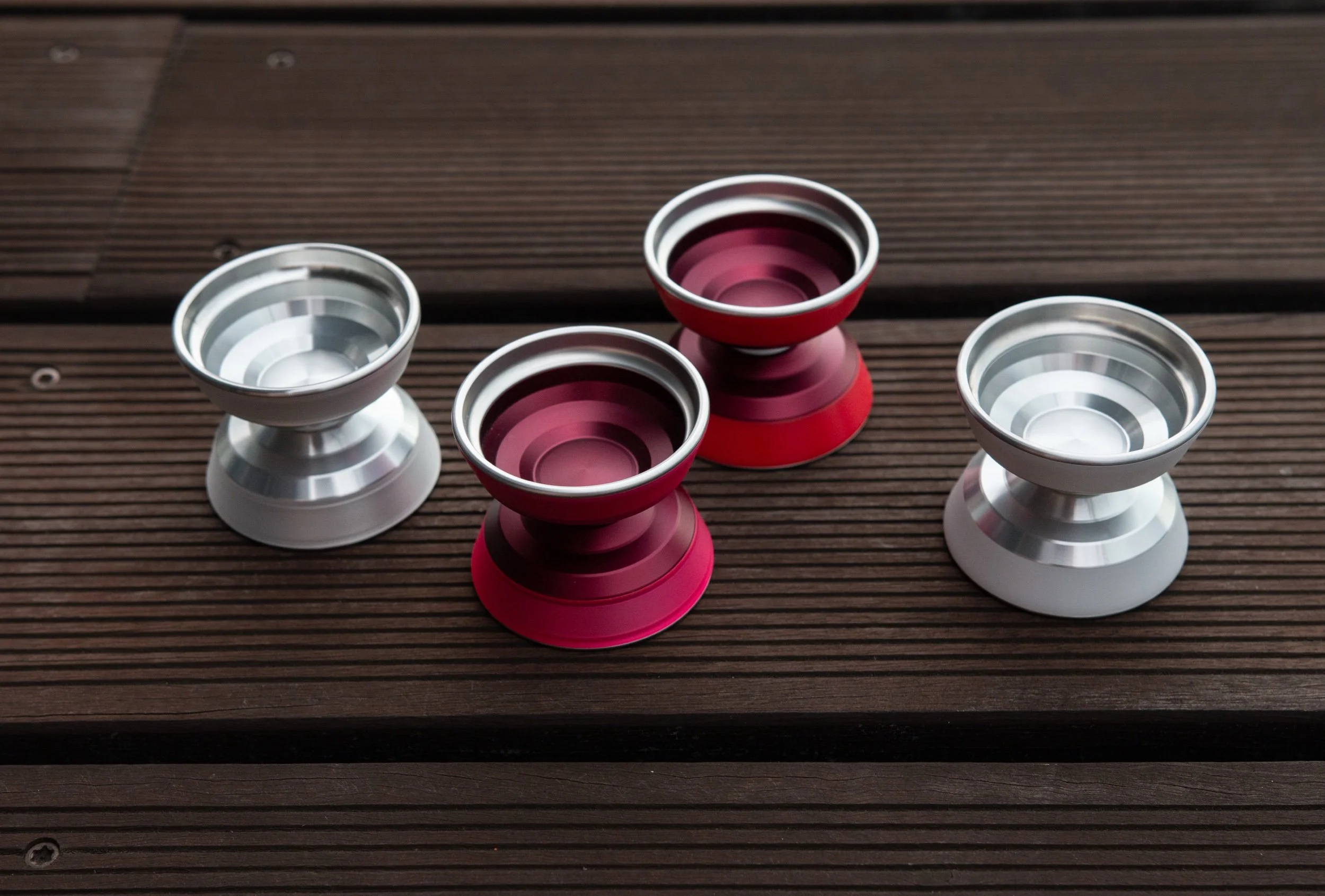 Obscura is our first foray into making competitive yoyos, inspired by our personal favorites such as the Kagerou & Mirage by Japan Technology, Noir by Empathy, and Liminal by YYR. While we were taking inspiration from these other models, we wanted to carry forward the design sensibilities of our previous models in a new direction aimed towards performance. Obscura features inset plastic rings that sit flush on its profile. The heavier POM rings provide a sturdier feel with more oomph, while the lighter PC rings are zippier and debatably a little more casual feeling. We really enjoy having 2 rim choices on a competitive model so that you can practice with a lighter, less tiring version of the same exact spec yoyo and are able to switch to the heavier version while barely having to adjust to a “different” yoyo.